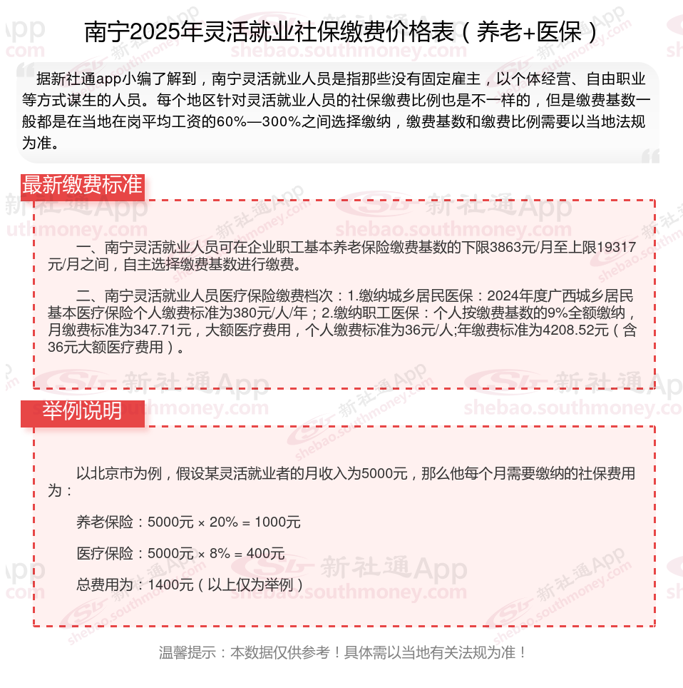 一、2025年南宁灵活就业社保缴费标准公布啦 南宁灵活就业社保多少钱一个月?