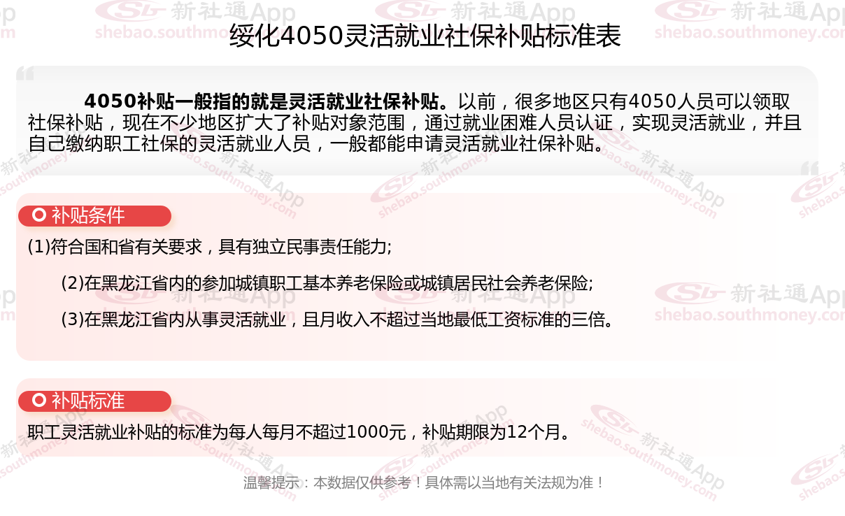 二、2025年绥化4050社保补贴标准是多少,最新4050社保补贴领取条件来了