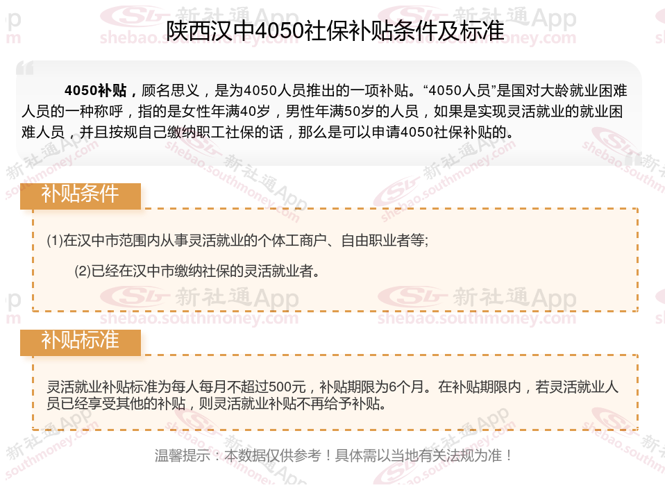 以上就是陕西汉中4050灵活就业社保补贴的相关内容,欢迎关注新社通/下载新社通APP了解更多五险一金专业资讯。