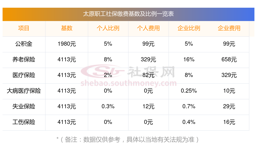 2025年太原社保缴费最低基数及个人和单位具体是多少钱?下表是2025年太原社保费用明细参考,新社通app-社保缴费查询工具提供的最新数据如下: