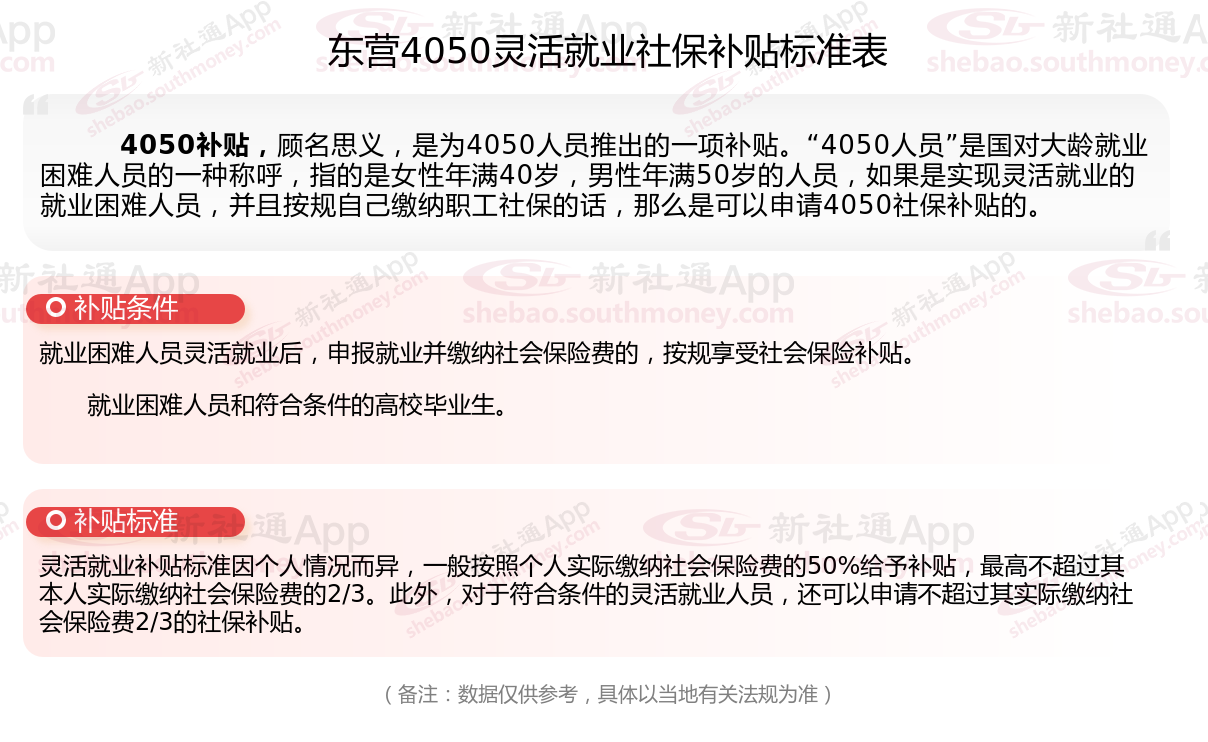 一、2025年东营4050社保补贴新规2025年东营4050社保补贴标准是什么,需要什么条件?