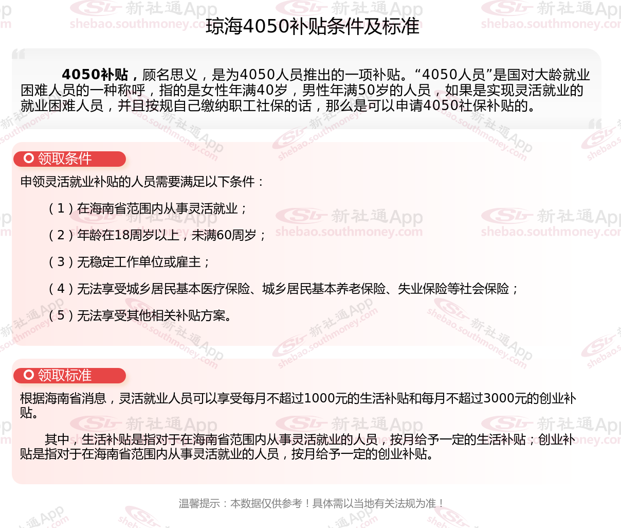 以上就是琼海4050灵活就业社保补贴的相关内容,欢迎关注新社通/下载新社通APP了解更多五险一金专业资讯。