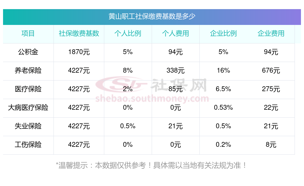2025年黄山社保缴费标准是多少,农村社保要交多少年才不交 下表是2025年黄山社保费用明细参考,新社通app-社保缴费查询工具提供的最新数据如下: