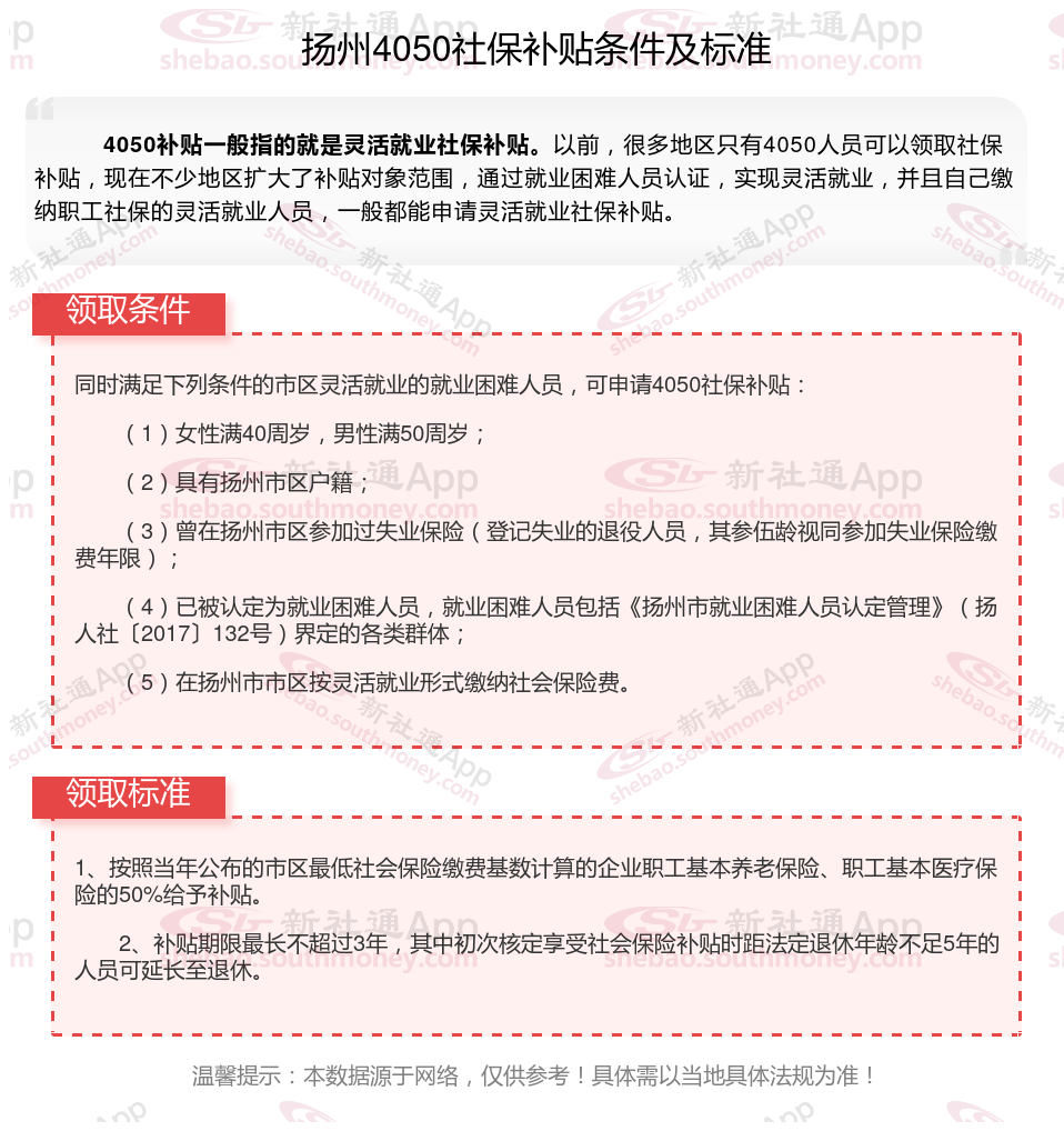 一、2025年扬州4050社保补贴标准是怎么样的?扬州4050一年可拿多少钱?