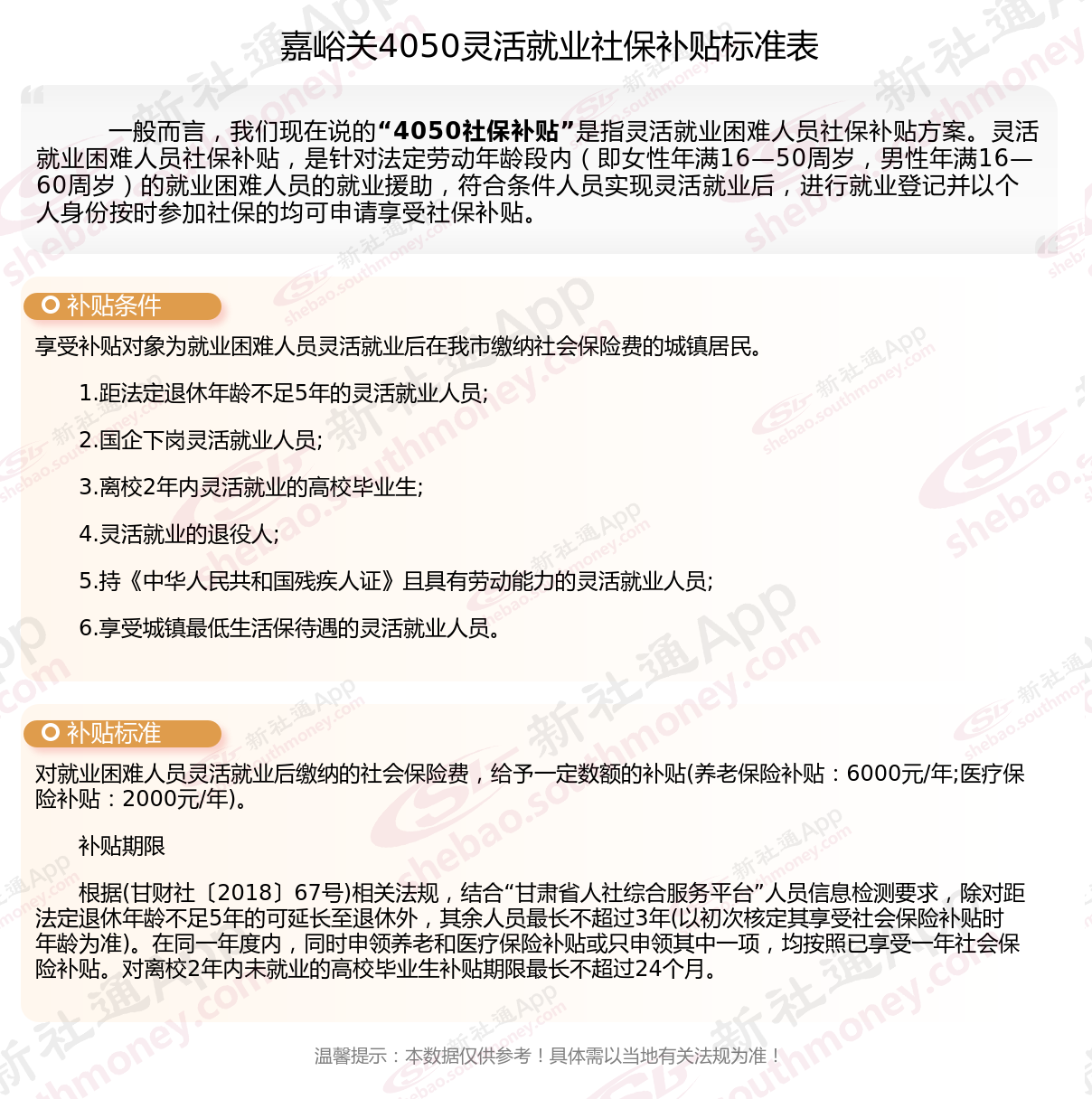 一、2023-2024年嘉峪关4050灵活就业社保补贴标准及条件