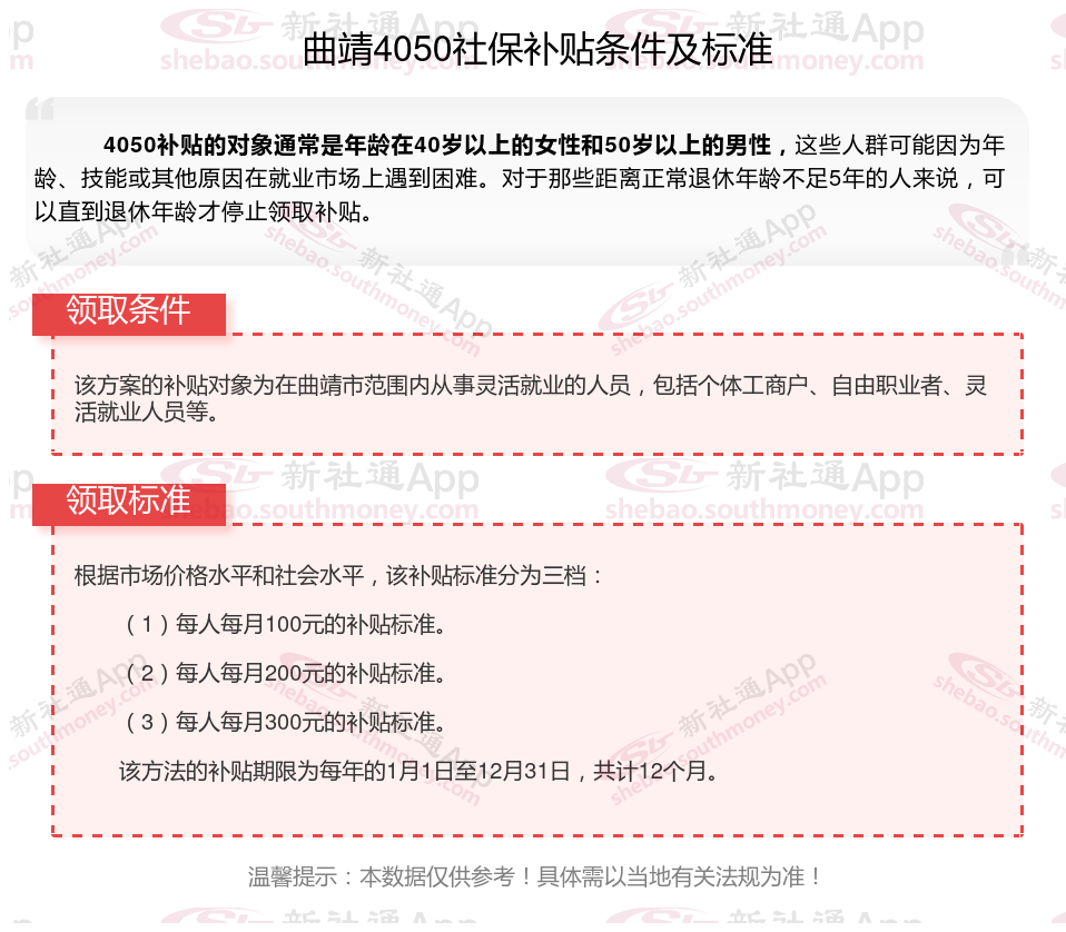 二、2025年曲靖4050社保补贴标准是多少?领取条件是什么?