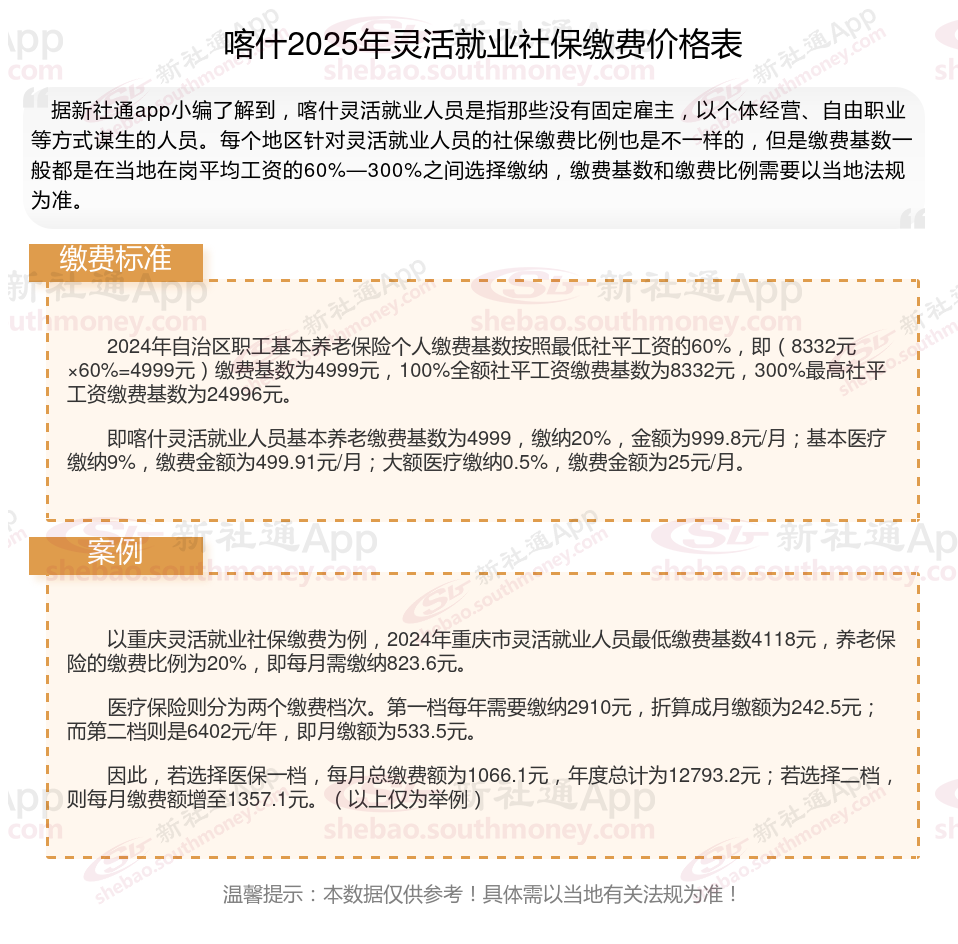 三、喀什2025年灵活就业社保缴费基数及比例最新消息