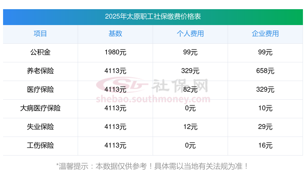 个人可以缴纳社保吗?缴纳社保多少钱一个月?下表是2025年太原社保费用明细参考,新社通app-社保缴费查询工具提供的最新数据如下: