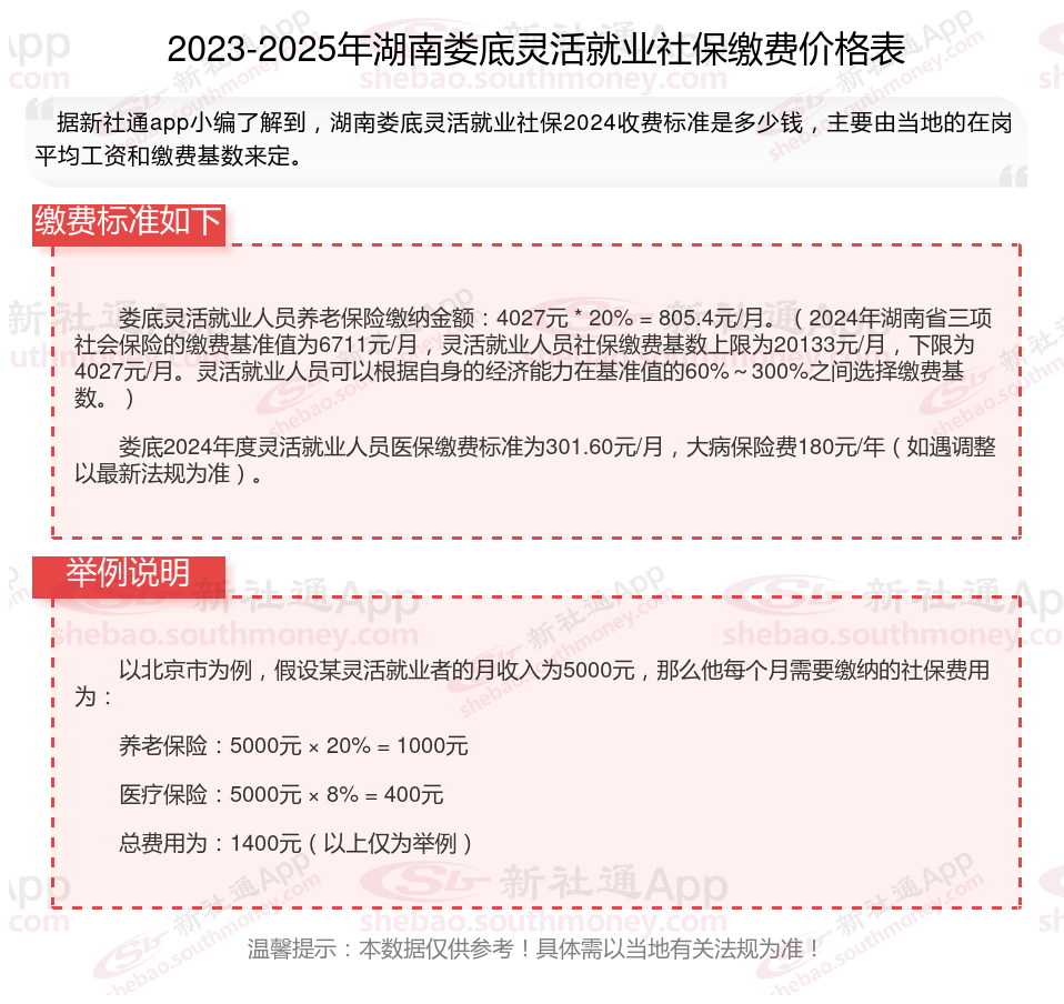 娄底2024年度灵活就业人员医保缴费标准为301.60元/月,大病保险费180元/年(如遇调整以最新法规为准)。