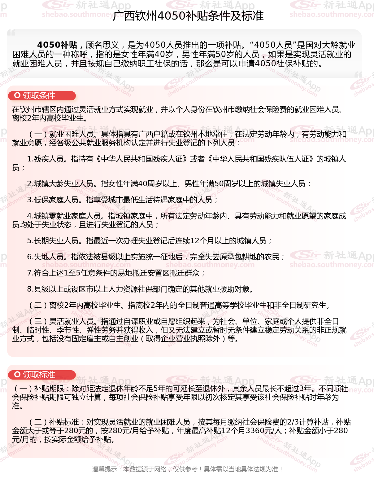 以上就是广西钦州4050灵活就业社保补贴的相关内容,欢迎关注新社通/下载新社通APP了解更多五险一金专业资讯。