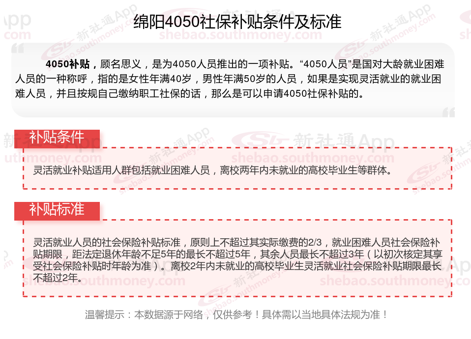 以上就是绵阳4050灵活就业社保补贴的相关内容,欢迎关注新社通/下载新社通APP了解更多五险一金专业资讯。