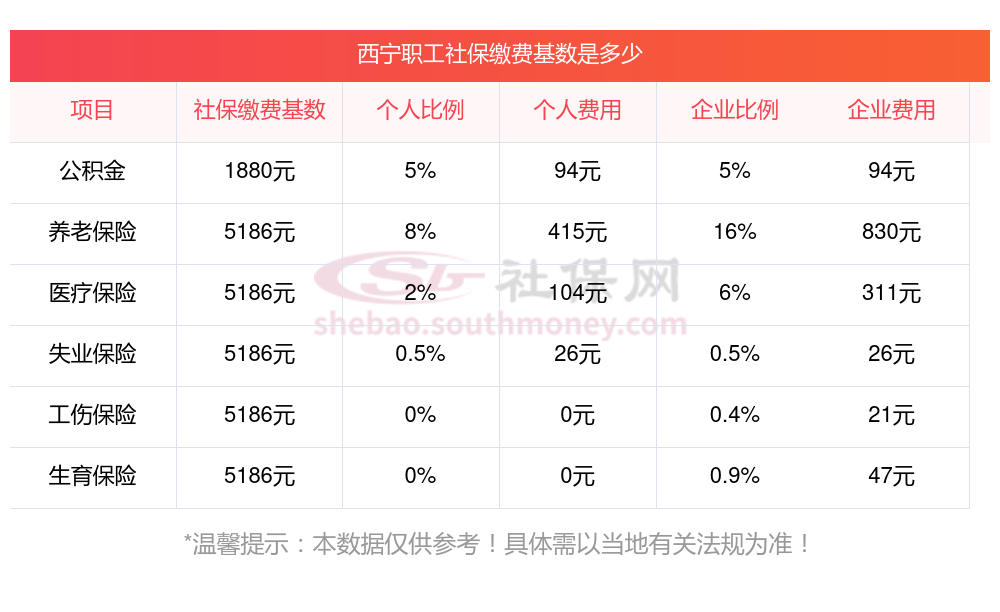 2025年西宁五险缴费标准是多少,2025年西宁社保缴费多少钱?下表是2025年西宁社保费用明细参考,新社通app-社保缴费查询工具提供的最新数据如下:
