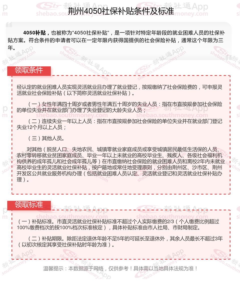 二、荆州4050社保补贴多少钱一个月,荆州4050社保补贴新规2025年最新标准