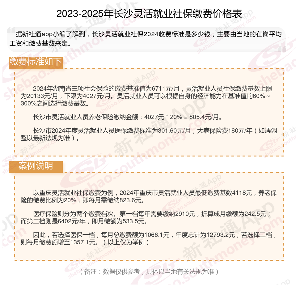 那么,长沙灵活就业人员社保交多少钱?买根据新社通app-社保缴费查询工具提供的2025社保缴费标准详情数据: