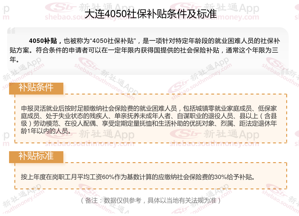 二、大连4050社保补贴标准及条件4050社保补贴,最新如下