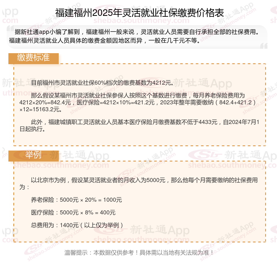 目前福州市灵活就业社保60%档次的缴费基数为4212元。