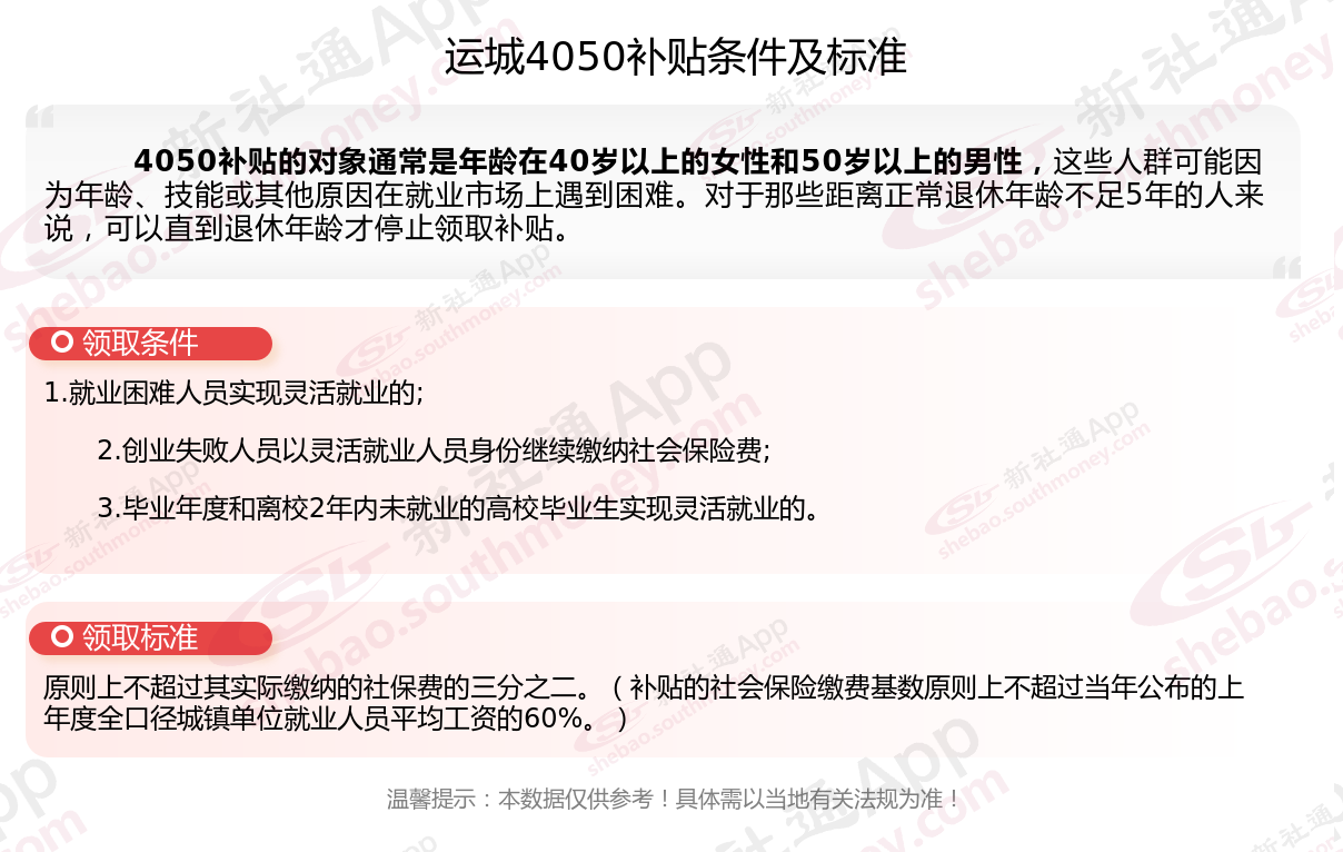 以上就是运城4050灵活就业社保补贴的相关内容,欢迎关注新社通/下载新社通APP了解更多五险一金专业资讯。