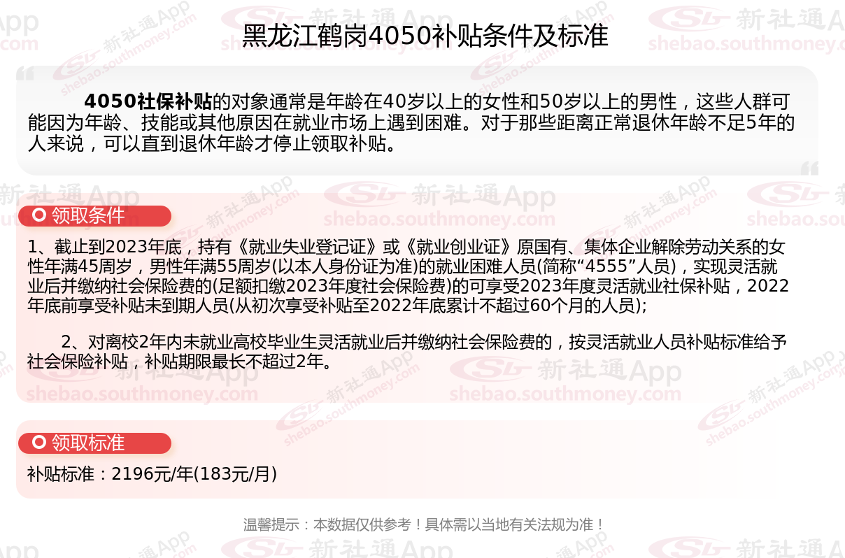 一、2025年黑龙江鹤岗4050社保补贴标准是怎么样的?黑龙江鹤岗4050一年可拿多少钱?