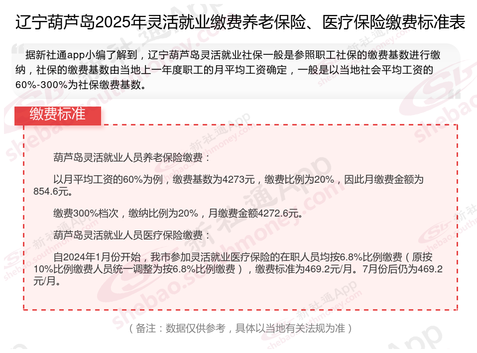 灵活就业人员缴纳社会保险,一般需要交多少钱一个月?根据新社通app-社保缴费查询工具提供的2025社保缴费标准详情数据: