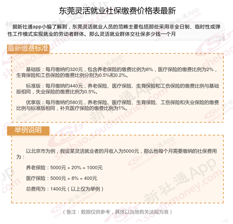 以上就是带来东莞灵活就业社保缴费标准相关知识,内容供参考,希望对你有帮助,欢迎关注/下载新社通APP解锁更多社保专业资讯。
