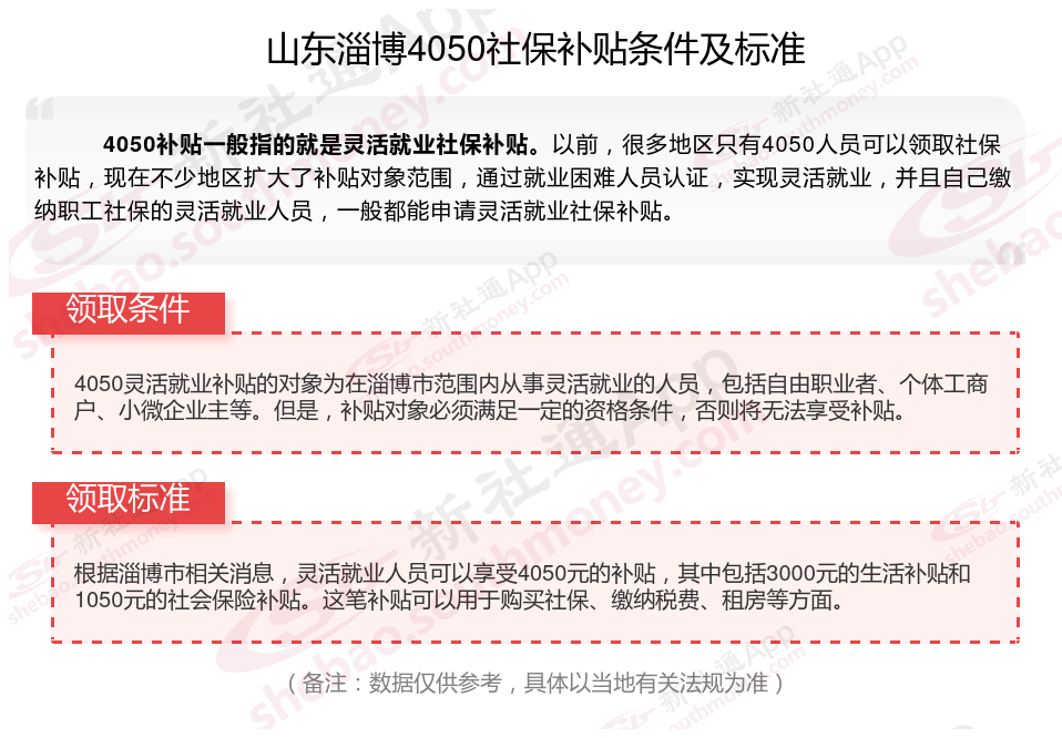 二、2025年山东淄博4050社保补贴标准及条件,最新如下: