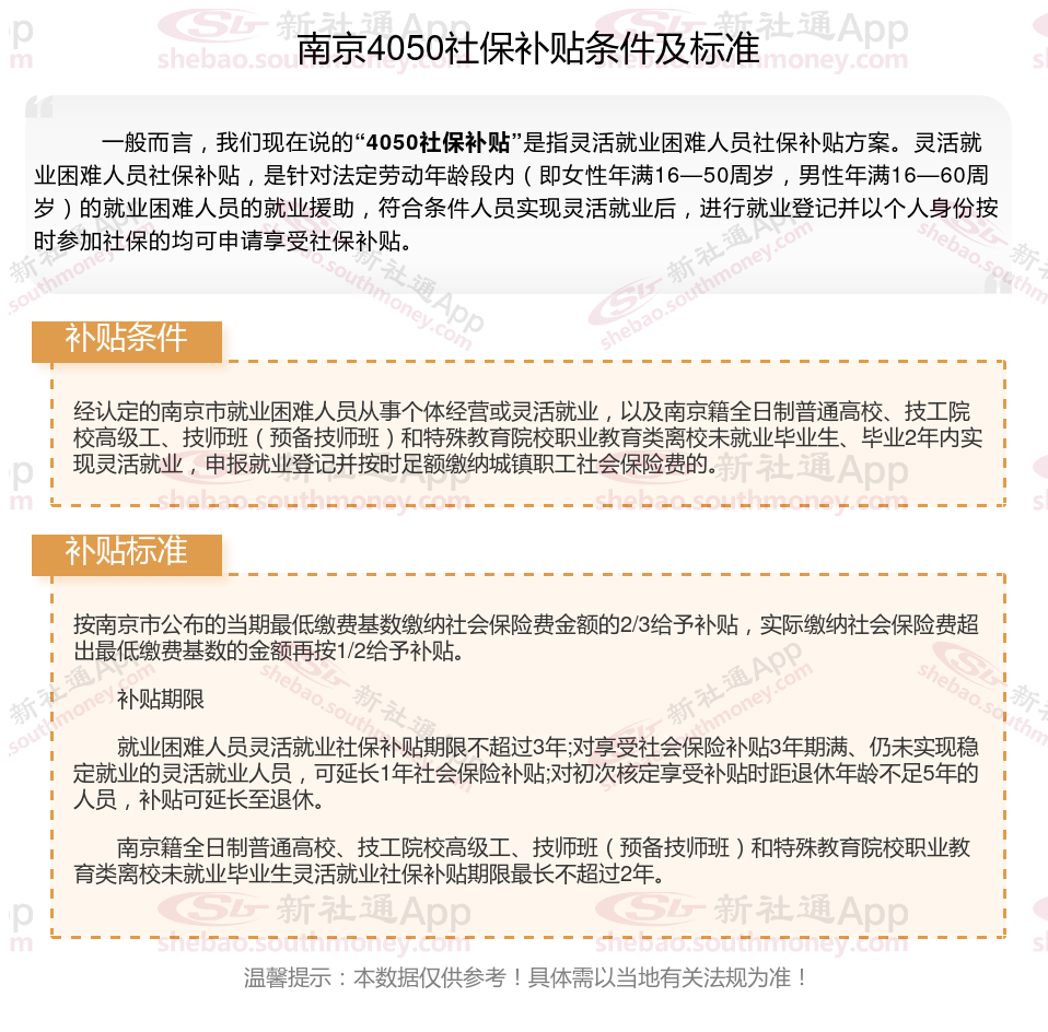 以上就是南京4050灵活就业社保补贴的相关内容,欢迎关注新社通/下载新社通APP了解更多五险一金专业资讯。