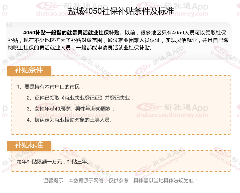 1、盐城4050社保补贴申请条件