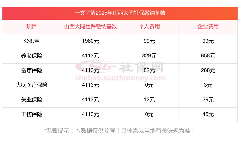 山西大同的社保缴费情况,依据2025年最新的缴费标准,我们可以详细地进行如下说明。这些标准是根据新社通app-社保缴费查询工具提供的数据整理得出的:
