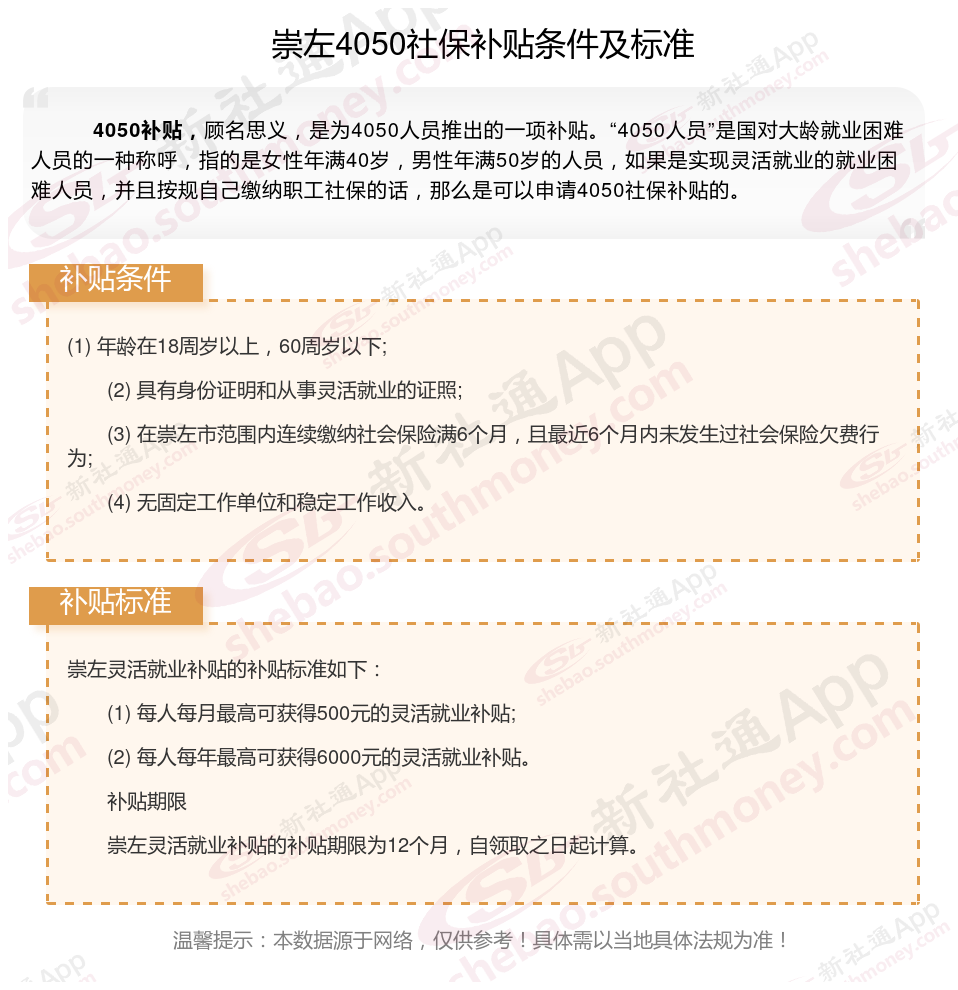 一、2025年崇左4050社保补贴标准是怎么样的?崇左4050一年可拿多少钱?