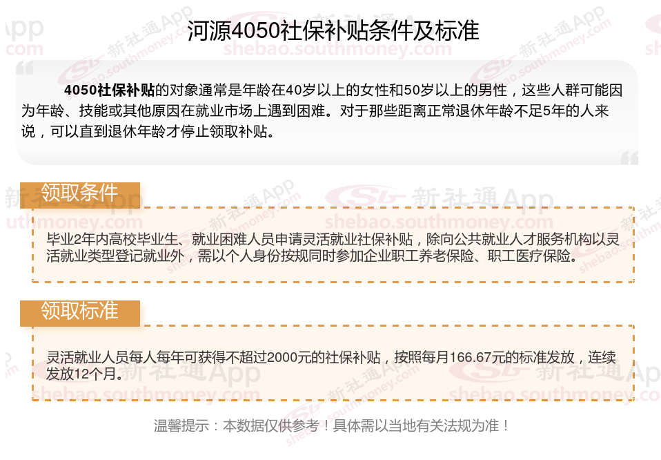 以上就是河源4050灵活就业困难人员社保补贴的相关内容,欢迎关注新社通/下载新社通APP了解更多五险一金专业资讯。