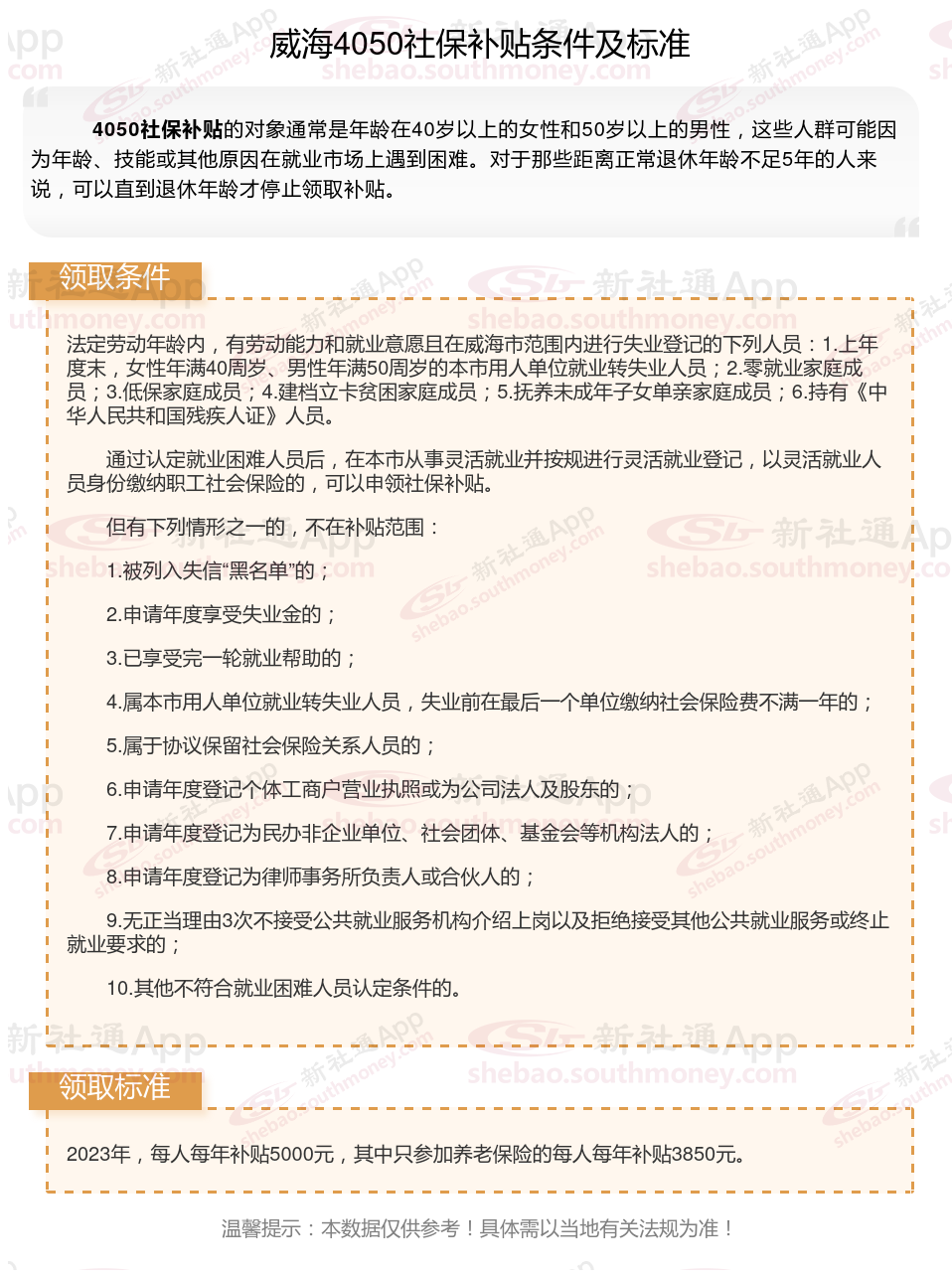 2025威海4050补贴主要针对的是年龄在40岁以上的女性和50岁以上的男性,这些人群通常因为年龄较大而面临就业困难。