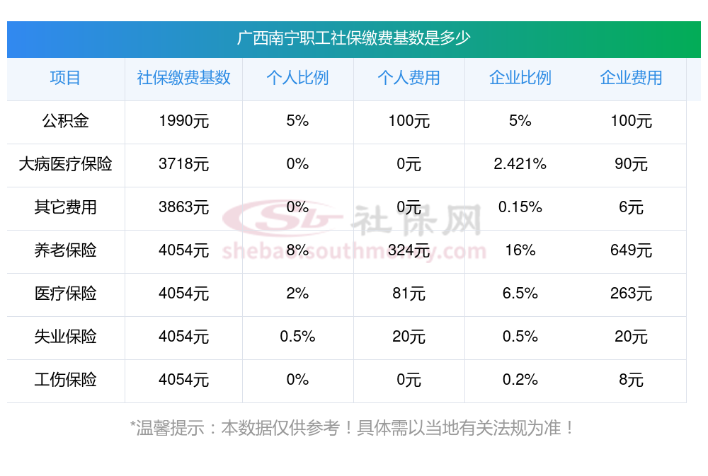 广西南宁社保怎么算公司和个人各交多少?