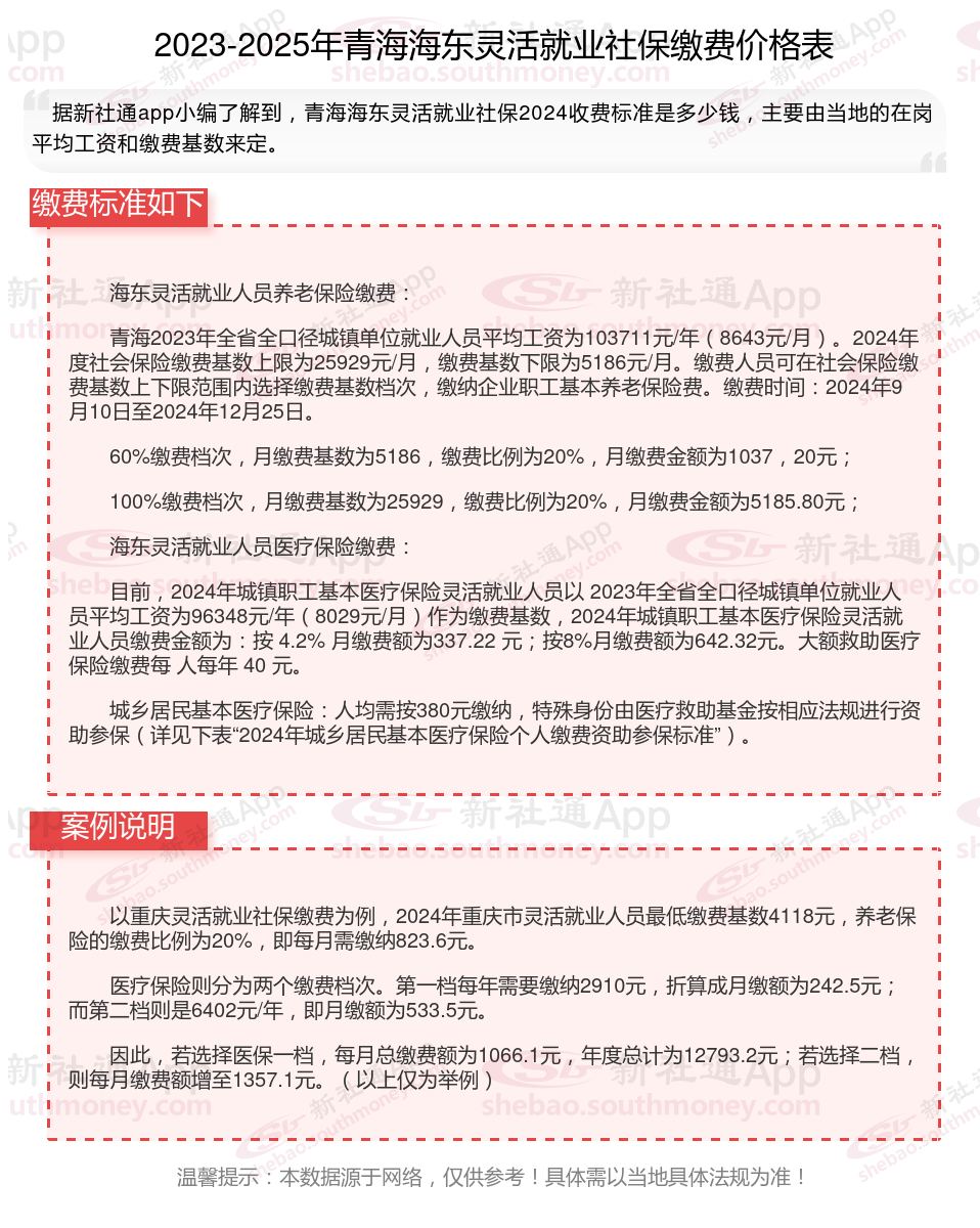 2025青海海东灵活就业社保缴费价格是多少钱一个月?根据新社通app-社保缴费查询工具提供的最新数据如下: