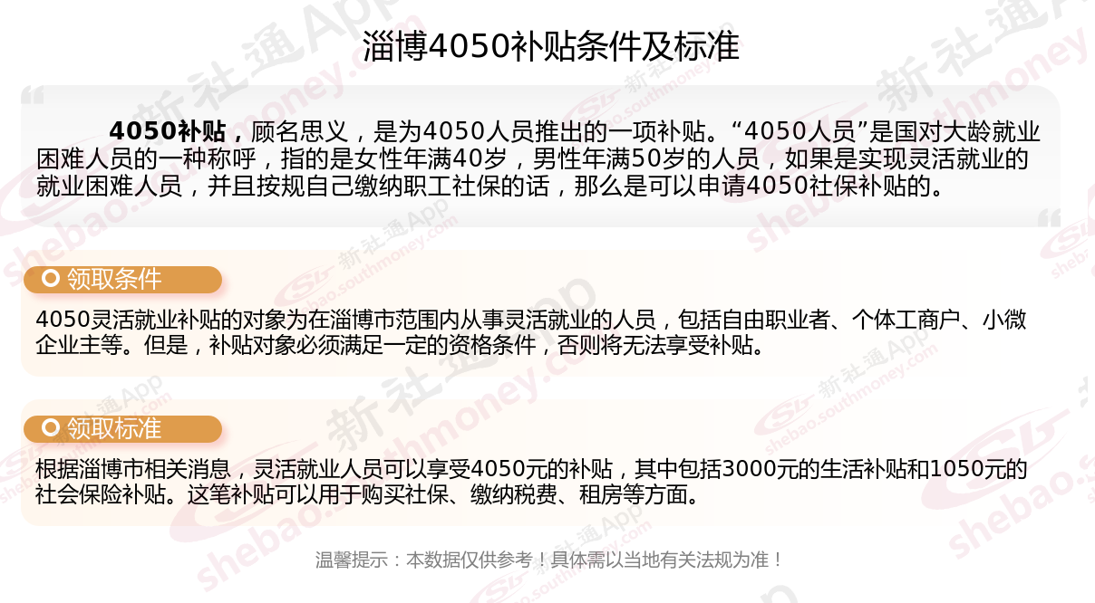 一、2023-2024年淄博4050社保补贴标准及条件,最新如下