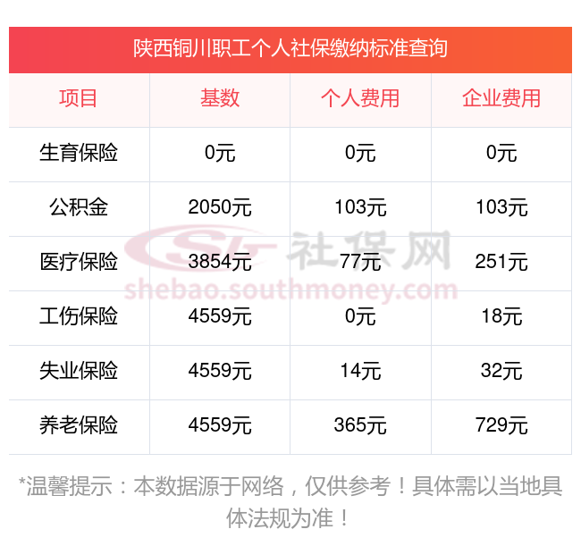 陕西铜川五险一金交多少钱一个月?下面和社保小编一起来看看2024-2025年陕西铜川最低标准社保费用明细参考,新社通app-社保缴费查询工具提供的最新数据如下: