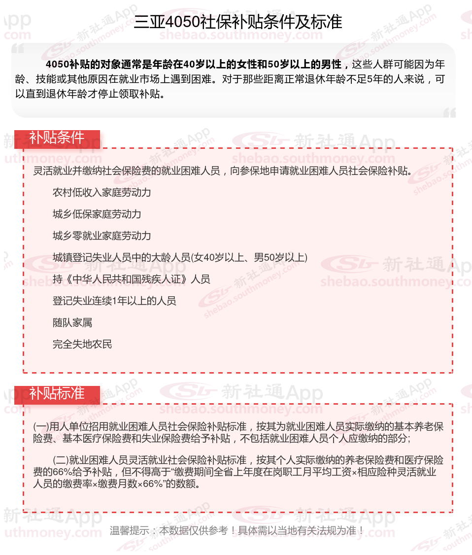 二、三亚4050社保补贴标准及条件(2025年最新)