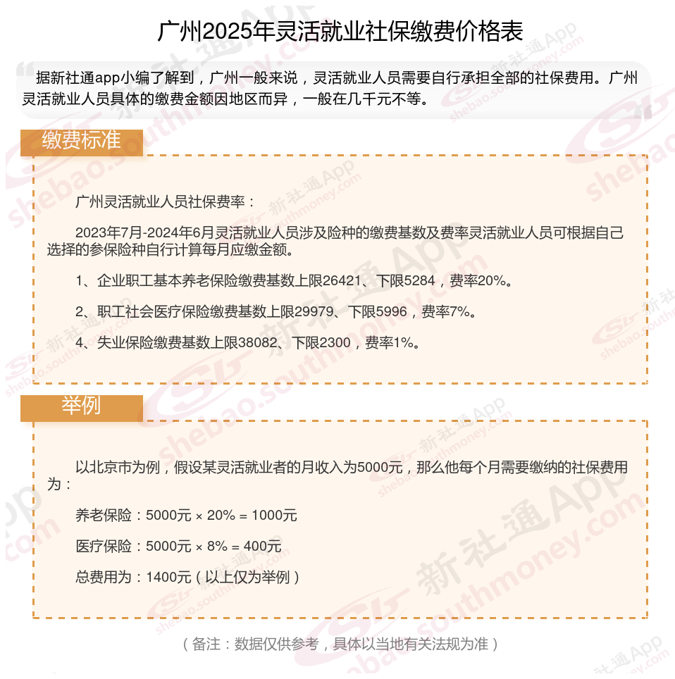 据新社通app数据显示,广州灵活就业养老保险缴费基数2024-2025年最新标准如下: