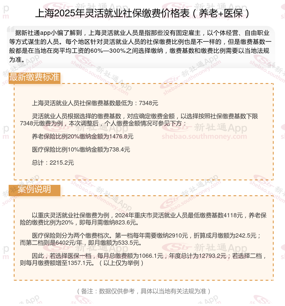 2025年上海灵活就业缴费标准个人交多少呢, 个人是可以自己交社保的吗?根据新社通app-社保缴费查询工具提供的最新数据如下: