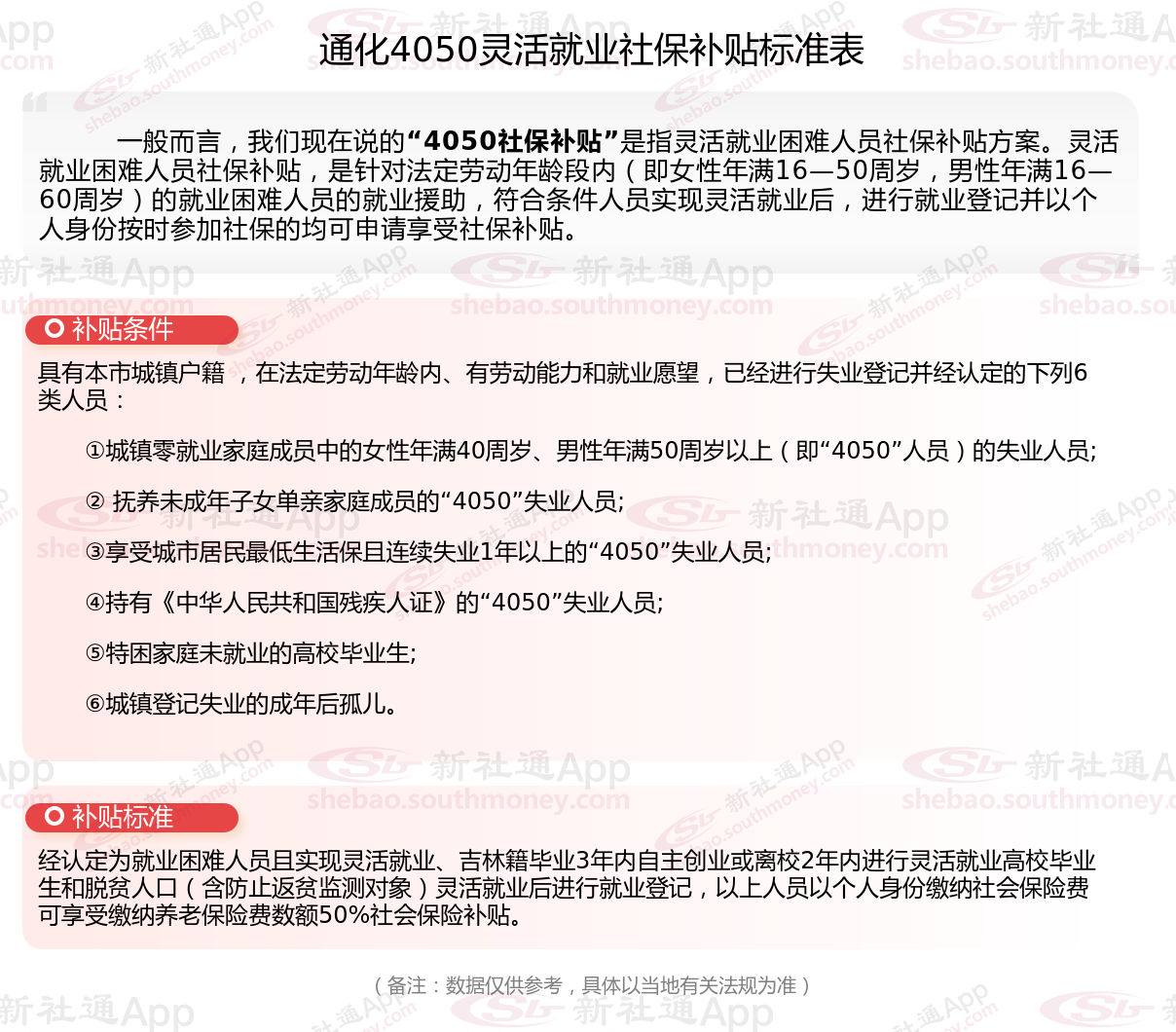 以上就是通化4050灵活就业社保补贴的相关内容,欢迎关注新社通/下载新社通APP了解更多五险一金专业资讯。