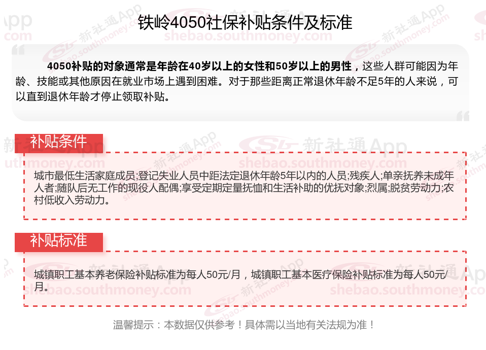二、铁岭4050社保补贴标准及条件4050社保补贴,最新如下