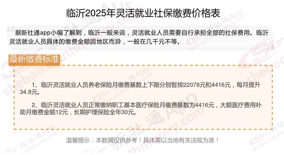 临沂灵活就业人员基本养老保险缴费基数暂按不低于4416元;