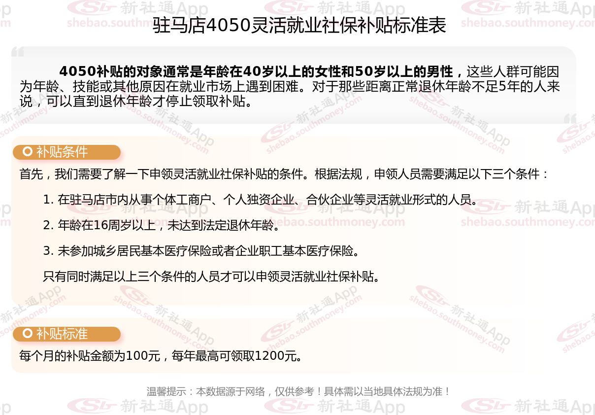 二、2025年驻马店4050社保补贴标准及条件(4050社保补贴多少钱?)