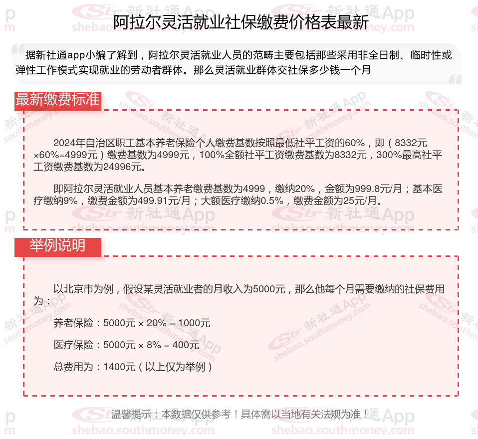 据新社通app数据显示,2024-2025年阿拉尔灵活就业人员养老保险的缴费标准: