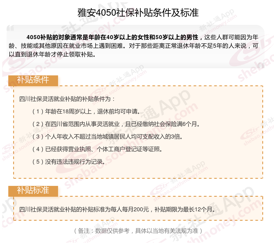 以上就是雅安4050灵活就业社保补贴的相关内容,欢迎关注新社通/下载新社通APP了解更多五险一金专业资讯。