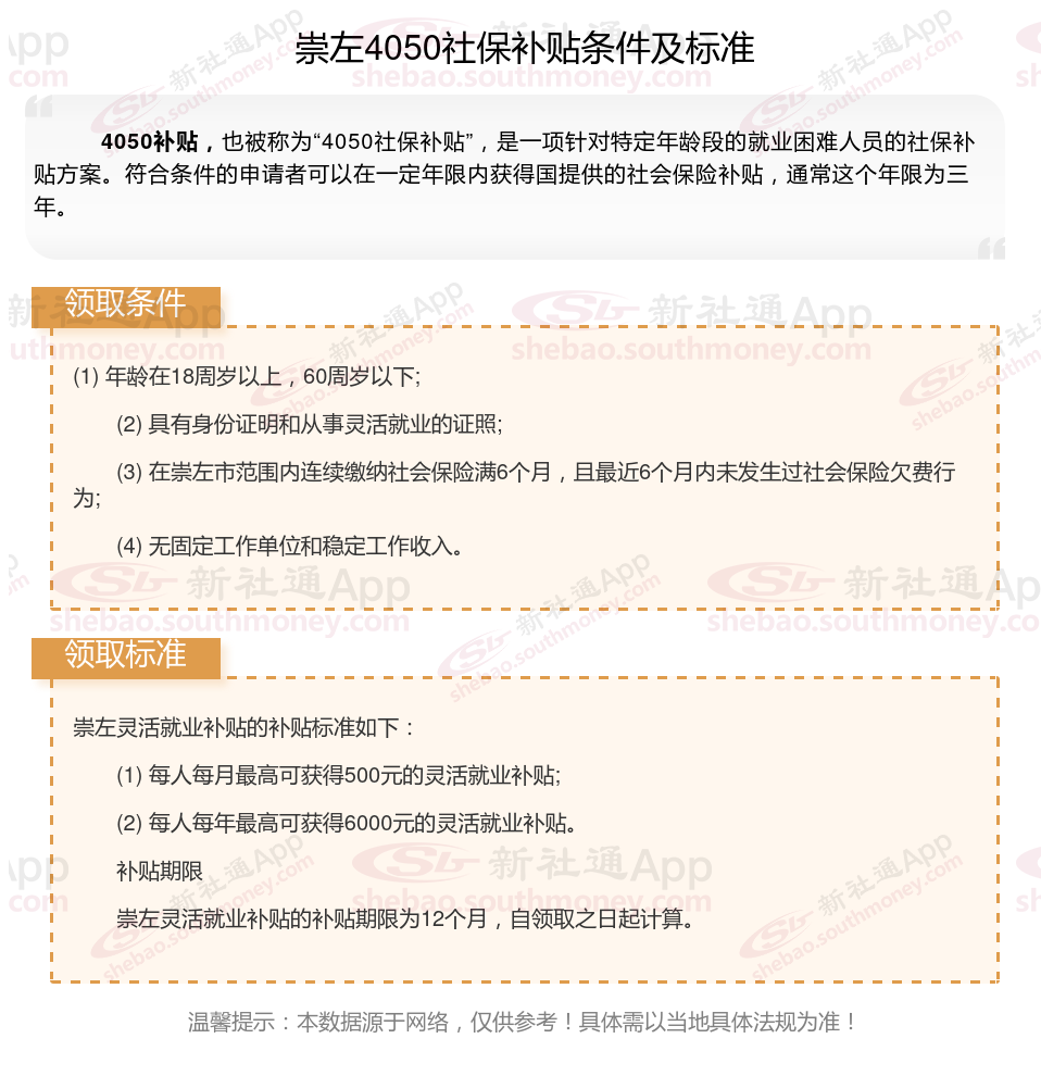 一、崇左4050社保补贴标准是什么?附条件