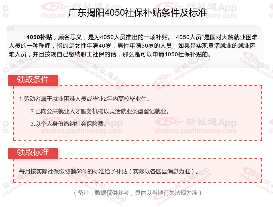 一、2023-2024年广东揭阳灵活就业4050社保补贴标准和条件是什么
