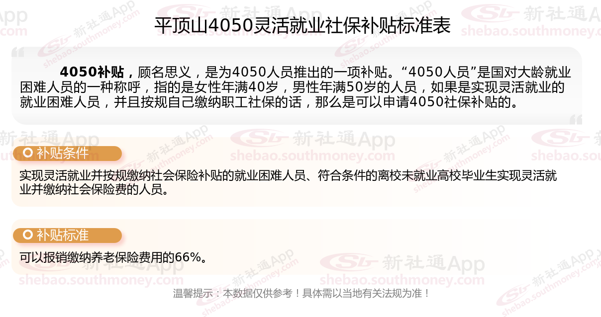 二、2025年平顶山4050社保补贴标准及条件,最新如下: