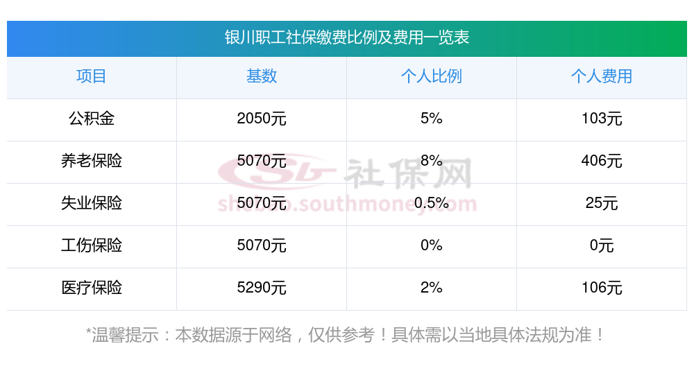 银川缴费社保比例一览 社保公司和个人各交多少?下表是2024-2025年银川社保费用明细参考,新社通app-社保缴费查询工具提供的最新数据如下: