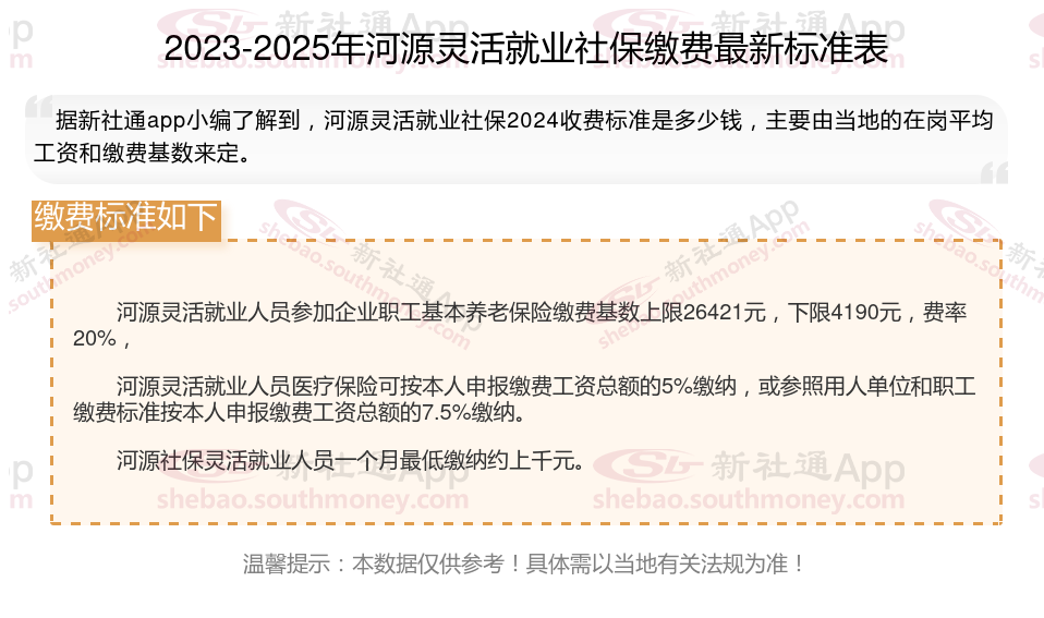 据新社通app数据显示,河源养老保险缴费基数2024-2025年最新标准如下: