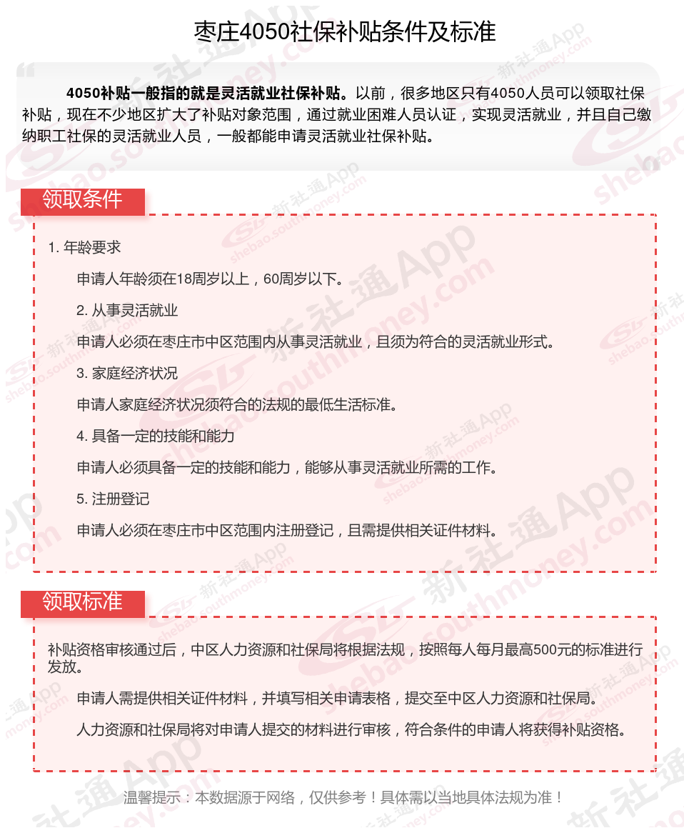 一、枣庄4050社保补贴标准及条件2025年最新消息